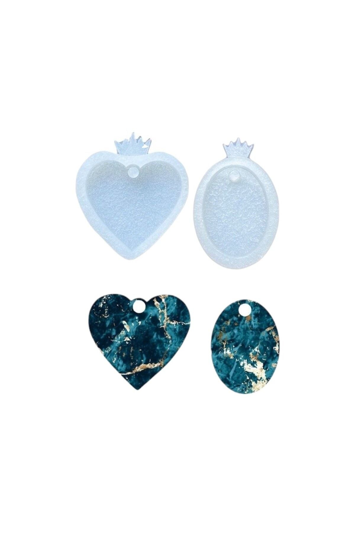 2 PCS Heart and Oval Epoxy silicone mold, Silicone Mold Set product size: 4cm depth: 4mm