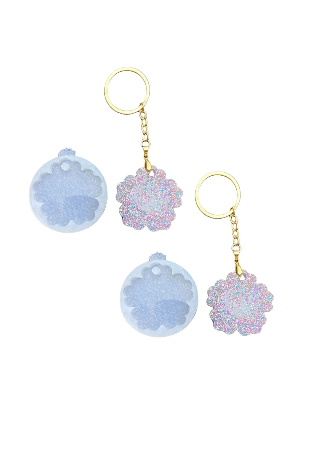 2 Pieces Flower Necklace Silicone Mold Epoxy Mold, Resin Necklace Keychain Mold Size: 4cm